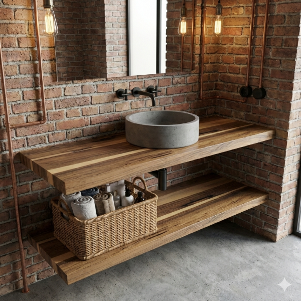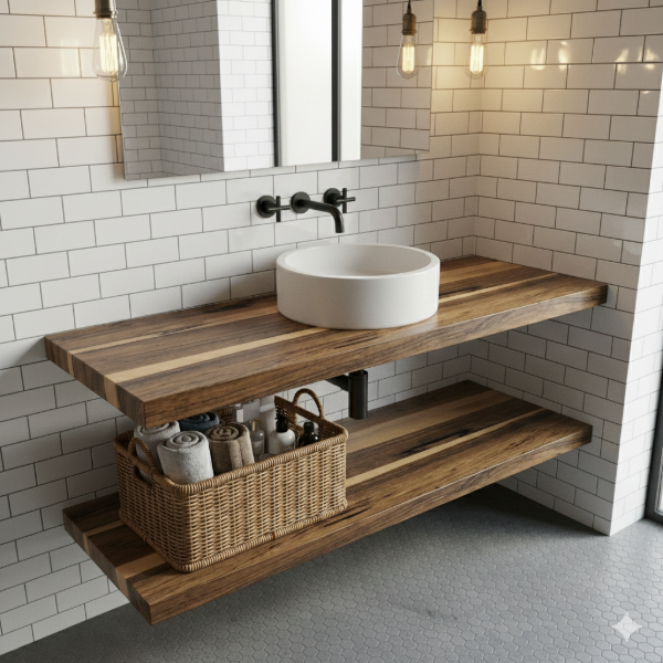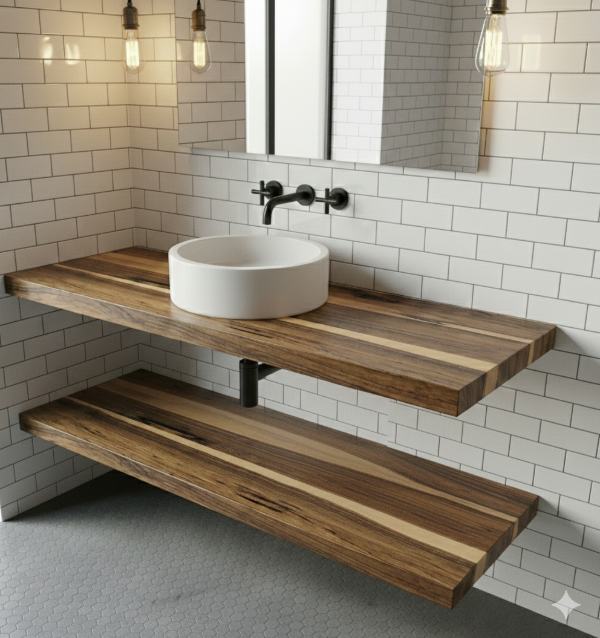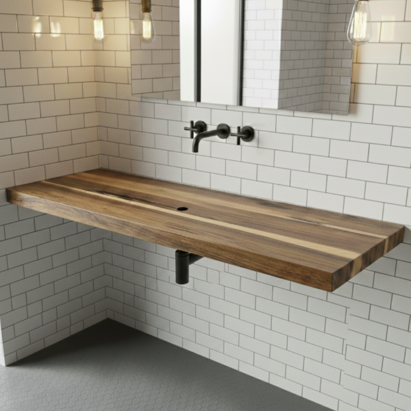1 Mesada en madera maciza de Guayubira con terminación cepillada, lijada, pulida y con un excelente acabado hidrolaqueado